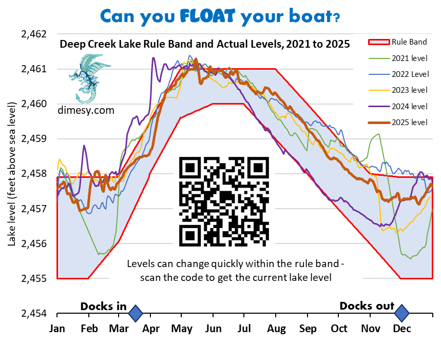 Deep Creek Lake DAILY Water Level and DCL Rule Band.